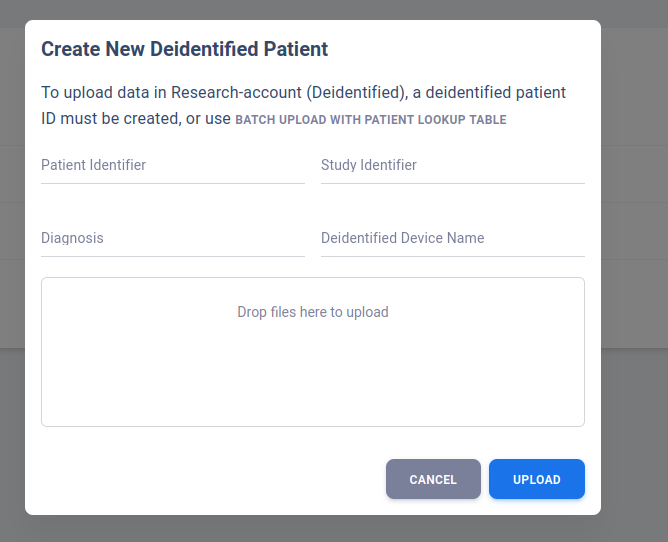 Upload Deidentified Patient (Research Account)