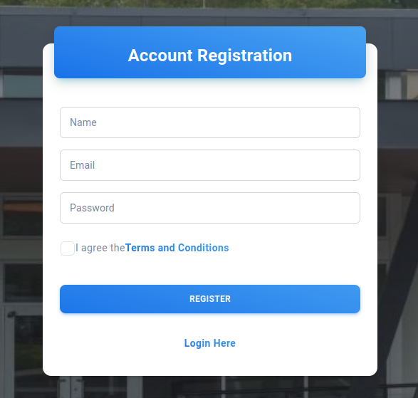 Account Registration interface can be seen below.