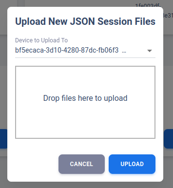 “Upload New Sessions” is where the Research account should upload their data. Unlike Clinician account, the Research account is assumed to be working with deidentified files. That means the PHI used to group uploaded JSON into respective Patient ID or Device ID will not be present in the uploaded JSON files. This additional process required by the Research account ensure we can properly manage the data and organize them in correct group.